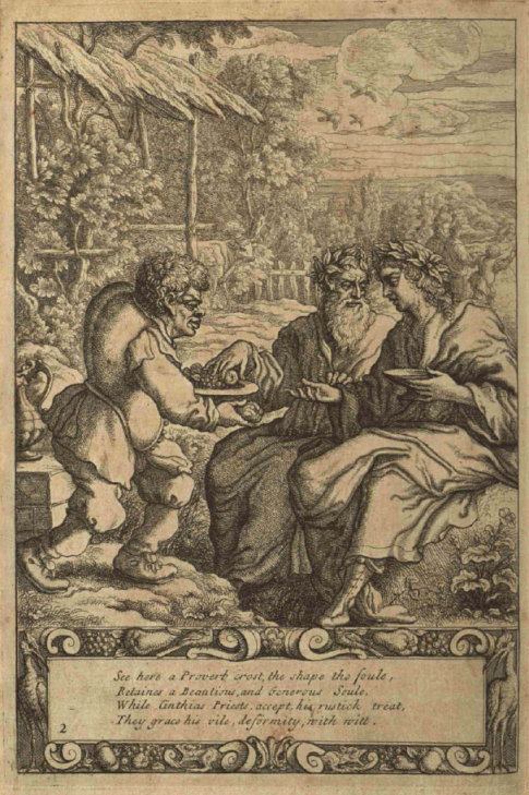 όπου ο Αίσωπος ενώ σερβίρει δύο ιερείς_πίνακας του Francis_Barlow_1687_wikipedia]